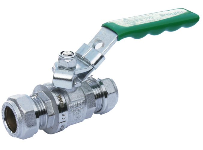 Chromium plated brass full bore ball valve (yellow lever handle). Compression ends to EN 1254/2, PN16.